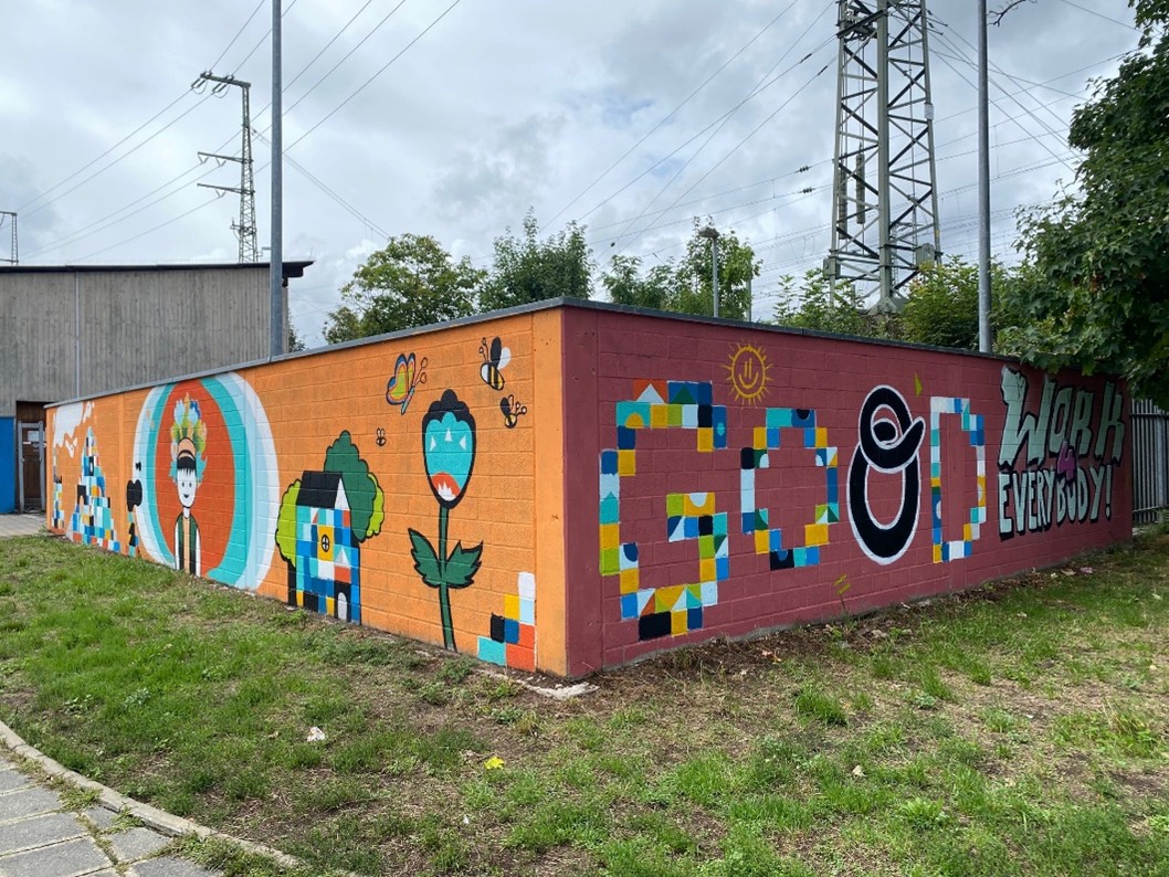 Im Juli dieses Jahres hatten wir die besondere Gelegenheit, gemeinsam mit der Nürnberger Künstlerin Marissa Herzog und unserem Nachhaltigkeitspartner Bluepingu e.V. an der Reihe „Bunte Wände: Kunst trifft SDGs“ mitzuwirken. Mit diesem Projekt konnten wir einen farbenfrohen Beitrag zur Verschönerung der Stadt Nürnberg leisten – und gleichzeitig ein Zeichen für mehr Nachhaltigkeit setzen.